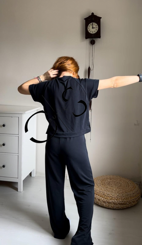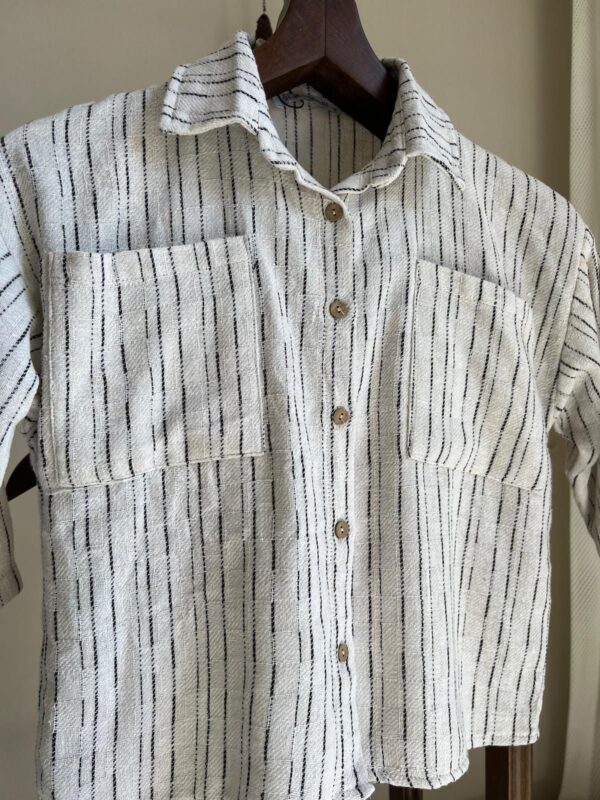 Müslin Keten Karışımı Siyah Çizgili Takım