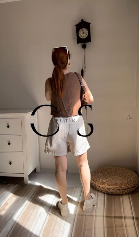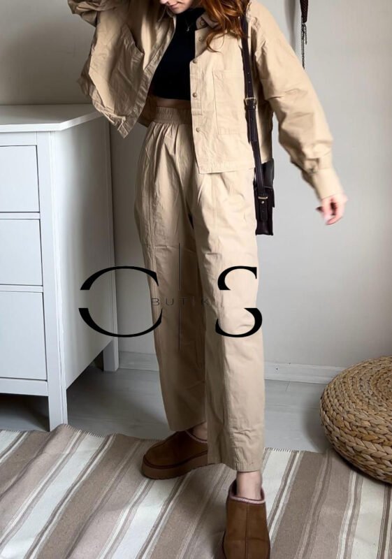 Yüksek belli tasarımı ve geniş cepleriyle hem şık hem de kullanışlıdır.