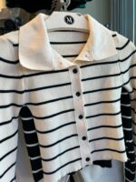 Anahtar Kelimeler: siyah beyaz çizgili triko, crop triko, kalp detaylı düğme, kadın triko, baharlık triko, yazlık triko, günlük giyim, özel davet, moda, trend