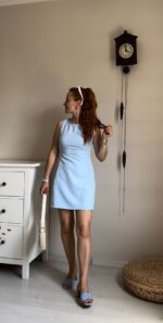 Bayan Mavi Sıfır Kol Elbise Modelleri ve Kombin Önerileri